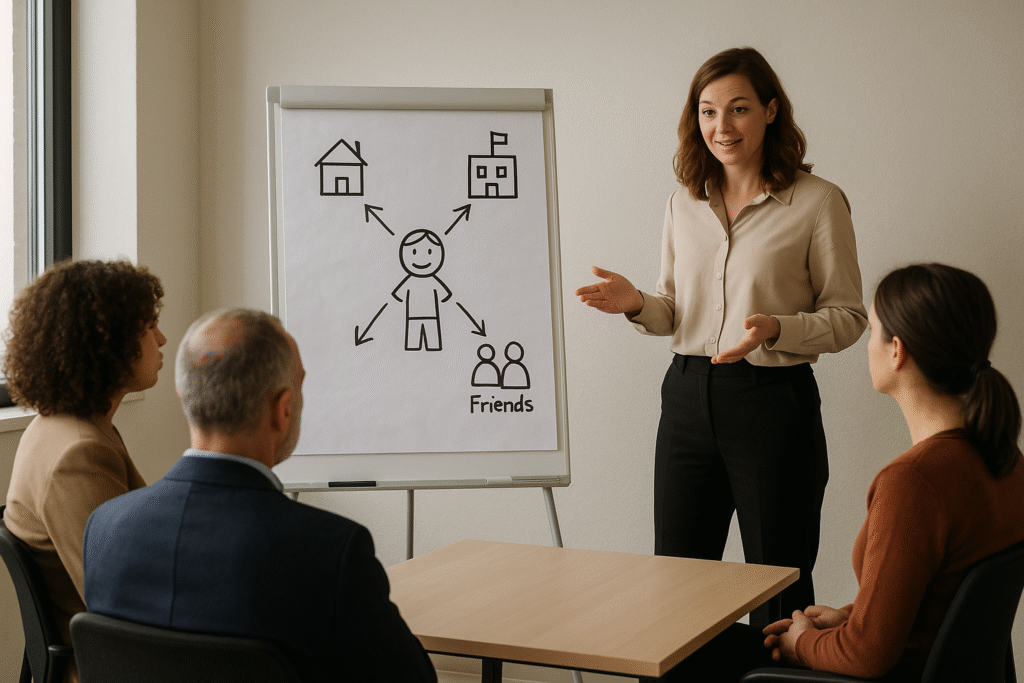 We kijken niet alleen naar problemen, maar juist naar wat wél werkt. Door stap voor stap overzicht te creëren, herstellen we vertrouwen en samenwerking. Kleine successen zorgen voor motivatie en beweging, zowel bij gezinnen als professionals.